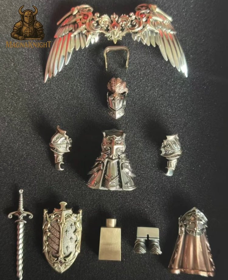 Handcrafted magnetic warrior figure. Each body part is detachable and connects magnetically, offering unique customization and collectible artistry